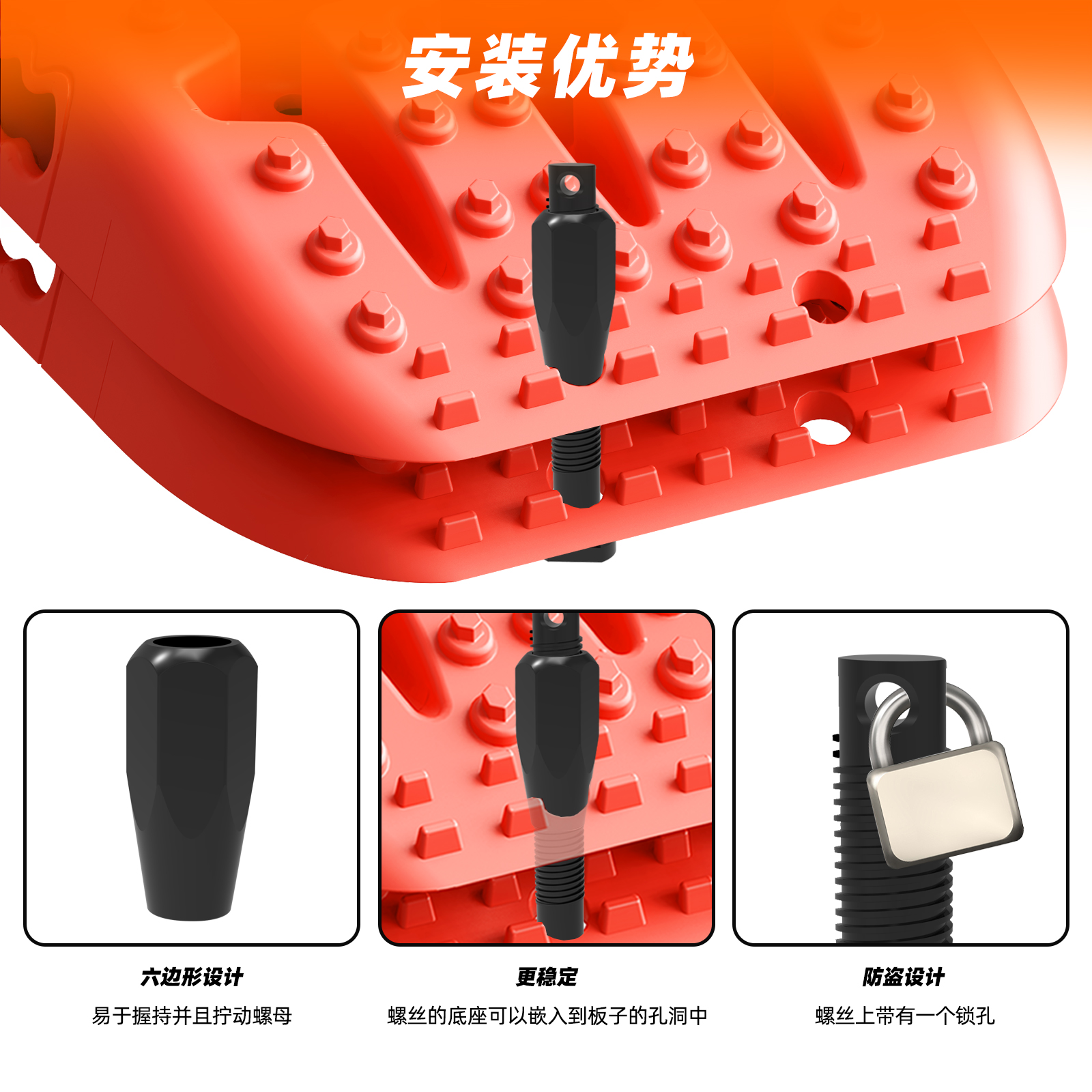 • 【齿咬效果】恢复板表面采用独特的齿状设计,提供卓越的咬合作用,其突出的摩擦点能够助力车辆迅速、安全地从各种困境中脱困,是理想的越野救援工具。