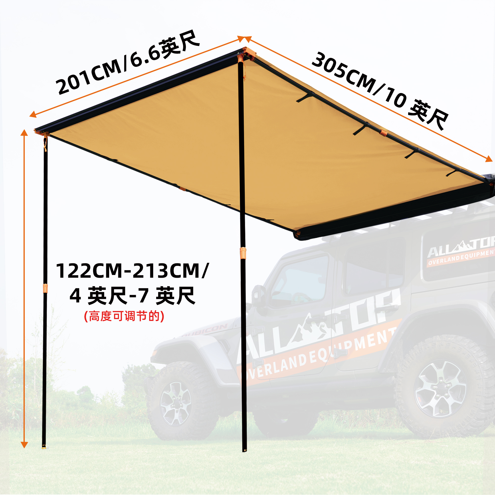 • 【便携休闲】提供约 66 平方英尺的遮阳/挡雨/挡雪区域。展开尺寸为 6.6 英尺 x 10 英尺,可调节伸缩高度为4英尺至7英尺。配件选项包括遮阳侧墙、前墙和遮阳房,增加遮阳面积和隐私空间。注意:包含用于车顶行李架、货物篮、平台等的基本安装硬件。