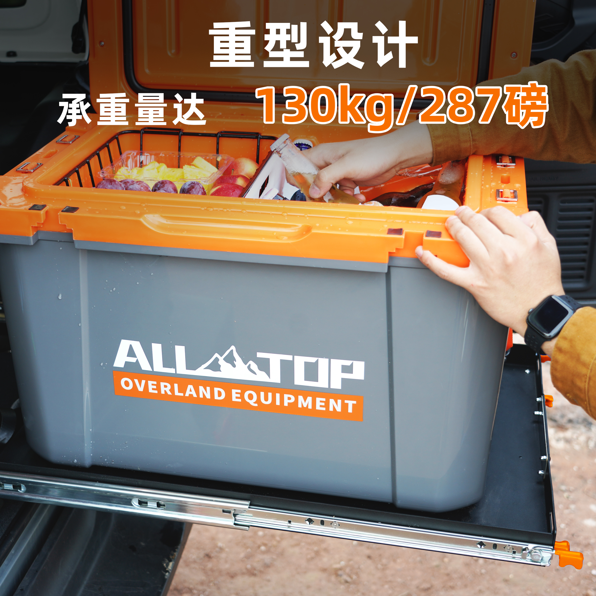 - 【创新设计】专为适配市场上绝大多数便携式车载冰箱与冷却器而生。通过 ALL-TOP 冰箱滑轨,让您取用冰箱及冷却器内的饮品、食物变得轻而易举,其全拉伸顺滑滑轨系统,操作流畅无阻,可以为您带来便捷体验。双手操作手柄是专为安全设计的。此外,我们创新的内置切菜板设计,可以让您在露营时轻松制作饮品配料,为周末休闲时光增添无尽趣味与惬意。